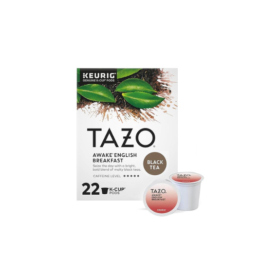Tazo Awake English Breakfast Black Tea is known for its robust caffeine content, which provides a gentle energy boost. Each K-Cup contains about 100 mg of caffeine, making it a great choice for those looking for a morning pick-me-up.